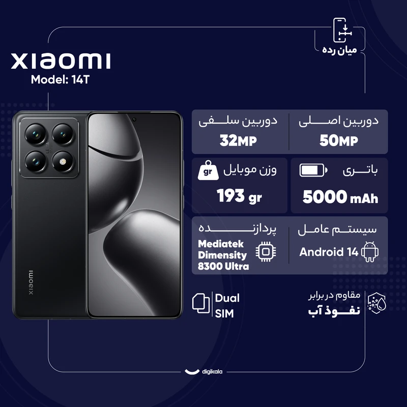 گوشی موبایل شیائومی مدل 14T دو سیم کارت ظرفیت 512 گیگابایت و رم 12 گیگابایت 5G