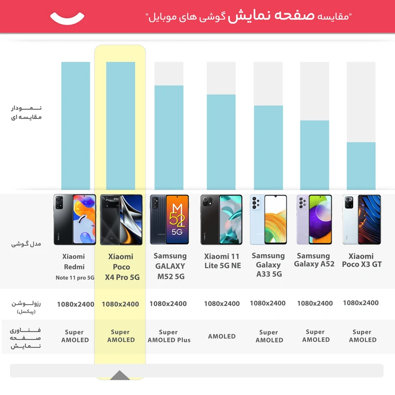 سری پوکو گوشی‌های هوشمند میان‌رده شرکت شیائومی با توجه به قیمت در نظر گرفته شده به مشخصات فنی مناسب و کاملا قابل قبولی مجهز شده‌اند و در بین کاربران محبوبیت بالایی دارند. یکی از گوشی‌های میان‌رده و با‌کیفیت این سری، شیائومی Poco X4 Pro 5G است که در جایگاه یک گوشی میان‌رده به مشخصات فنی مناسبی مجهز شده است. در نمای رو‌به‌رویی این گوشی از صفحه‌نمایش با ابعاد 6.67 اینچ و رزولوشن 1080×2400 پیکسل از نوع سوپر امولد بهره برده است. این صفحه‌نمایش با توجه به توانایی نمایش 395 پیکسل در هر اینچ و نرخ بروزرسانی 120 هرتز، عملکرد بسیار خوب و با‌کیفیتی را به‌شما ارائه می‌کند. در قسمت پشتی یک سنسور دوربین اصلی قدرتمند با رزولوشن 108 مگاپیکسل از نوع عریض در کنار سنسور 8 مگاپیکسلی از نوع فوق عریض (ultrawide) و سنسور 2 مگاپیکسل ماکرو، سنسور‌های دروبین سه‌گانه Poco X4 Pro 5G را تشکیل می‌دهند. برای دوربین سلفی هم سنسور با رزولوشن 16 مگاپیکسل در نظر گرفته شده است. در بخش مشخصات سخت‌افزاری هم حضور پردازنده اسنپدراگون 695 5G شرکت کوالکام سبب شده تا این گوشی عملکرد قابل قبولی را در اجرای بازی‌های حتی سنگین همانند آسفالت 9 داشته باشد. البته نباید فراموش کنیم که به لطف حضور این پردازنده، Poco X4 Pro 5G توانایی پشتیبانی از شبکه‌های اینترنتی پرسرعت نسل پنجم یا همان 5G را هم دارد. باتری قدرتمند با میزان ظرفیت 5000 میلی‌آمپر‌ساعت در کنار شارژر 67 وات مجهز به تکنولوژی شارز سریع (توانایی شارژ صفر تا صد درصدی در مدت زمان 41 دقیقه) از دیگر مشخصات در نظر گرفته شده برای این گوشی هوشمند میان‌رده هستند.